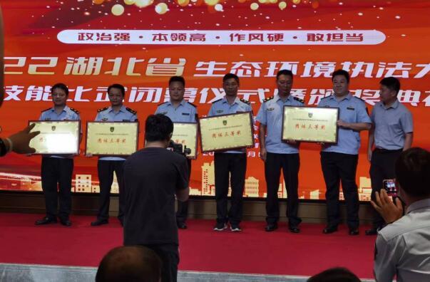 湖北省2022年生态环境执法大练兵技能比武8月5日落幕,荆州代表队从17个市州参赛队伍中脱颖而出,喜摘团体三等奖,2名选手以优异成绩喜获个人三等奖。