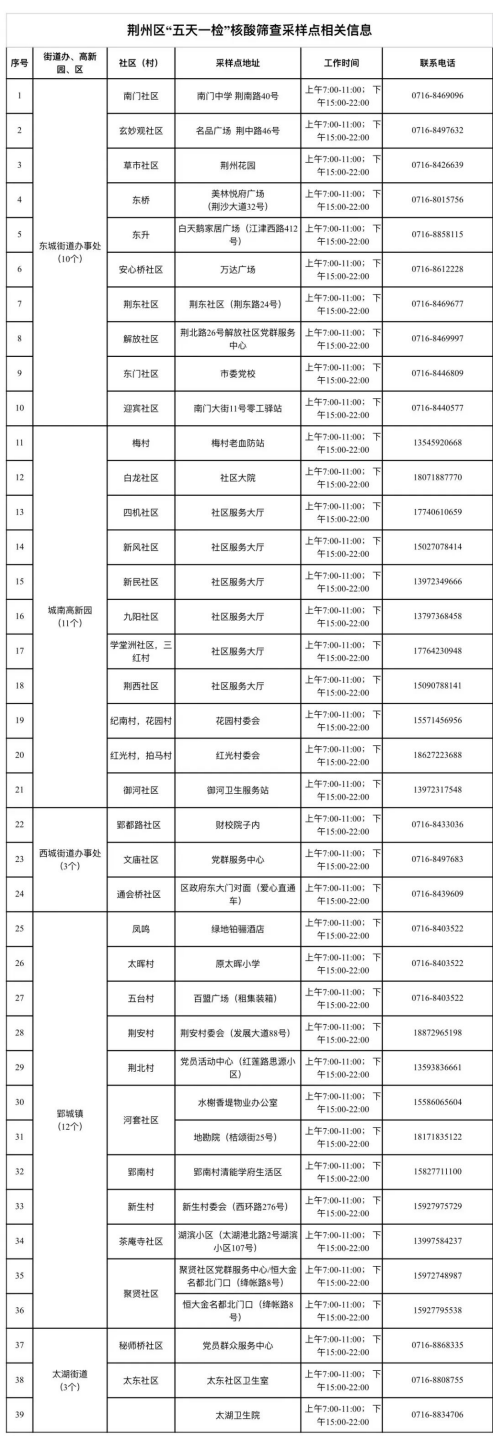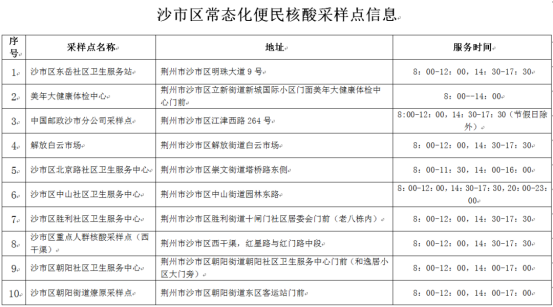 近日,海南、潜江等地新增多例新冠肺炎感染者,为进一步强化新冠肺炎疫情管控措施,切实保障广大人民群众身体健康和生命安全,荆州各地提倡市民进行常态化核酸检测,并相继公布了便民核酸筛查采样点。