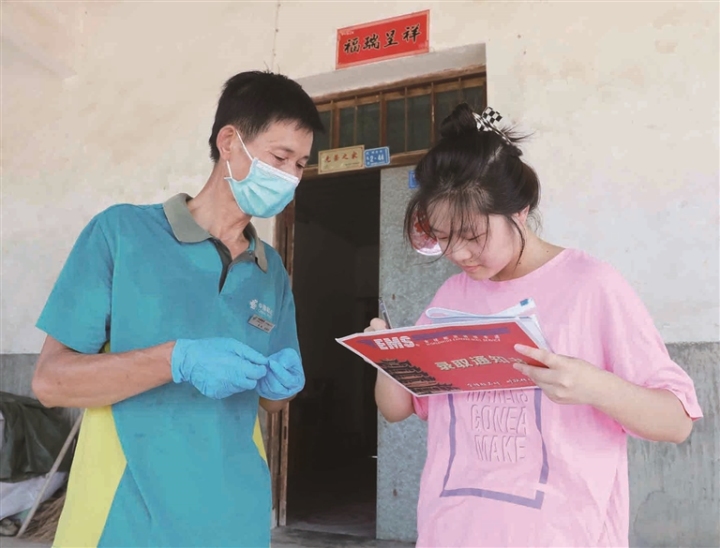 “现在是淡季,但每天也有几百件要送”一顿忙碌后,陈林的额头和脖颈热得渗出了汗珠,后背的衣服湿了一大块。临近10点半,陈林将分拣好的邮件又细数了一遍,“今天收到两份大学录取通知书,要赶紧给学生先送去。”话音刚落,陈林便驾驶着满载快递包裹的面包车从单位出发,开始了一天的走乡串户。