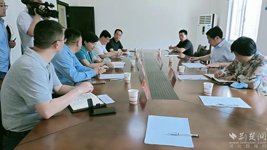 黄冈市委组织部、市商务局领导与罗田县委书记及相关部门负责人共同商量对策,解决企业面临的“违约”难题。通讯员供图