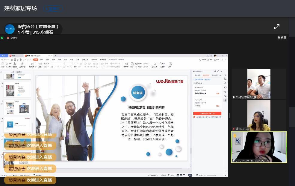 为满足荆州企业与东盟国家企业在新冠肺炎疫情防控常态化背景下的贸易需求,进一步深化与该地区各国的经贸合作,8月10日上午,荆州11家门窗行业企业参加线上中国—东盟国际贸易数字展览会专场推介活动。