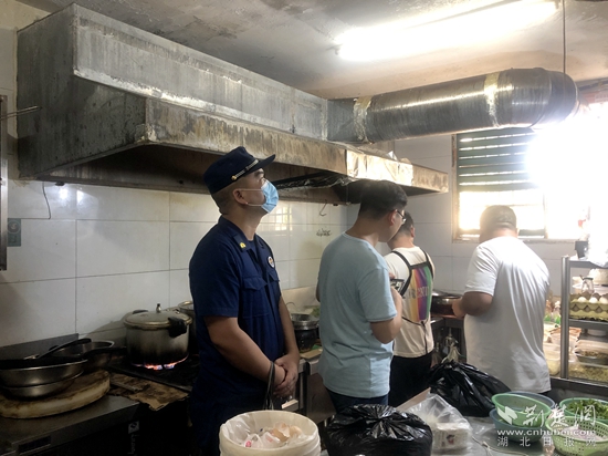 8月11日,检查人员走进辖区多家餐饮场所,对是否使用正规燃气、液化气罐是否摆放正确、胶管是否老化、接口是否泄漏、是否安装报警器、消防器材是否配备齐全且完好有效、消防通道是否畅通等情况进行逐项排查,同时针对隐患问题建立整改台账,要求限期整改。