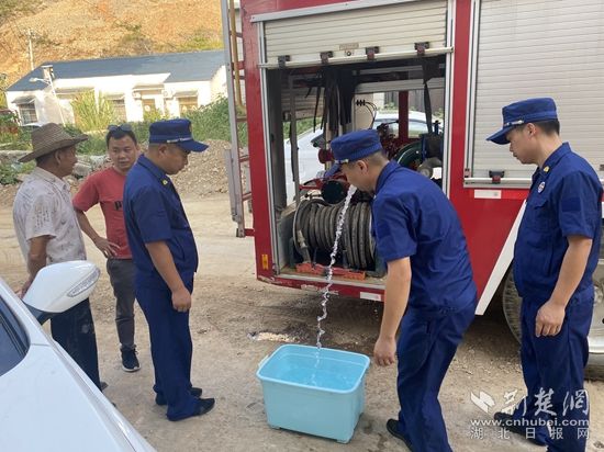 为了让居民喝上放心水,送水前,消防员对消防车水箱、水带等供水器材进行了反复清洗、消毒,确保供水卫生。期间,消防员除了在指定地点送水外,还主动上门入户开展宣传,将消防知识送进村民家中。