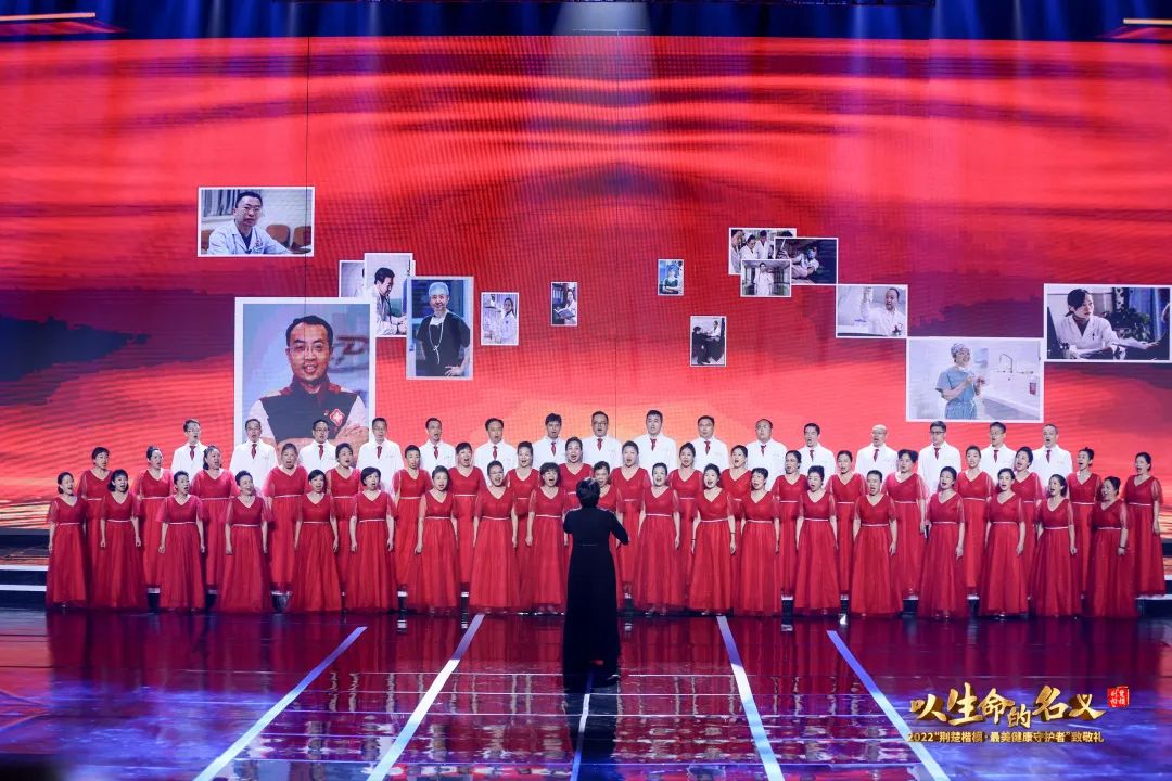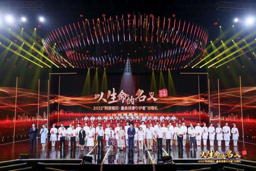 伴随着沉浸式先导片缓缓上演,涓涓细流涌进生命长河,白衣战士们冲锋在前、攻克顽疴的一幕幕场景感人至深、令人振奋。19时,2022“荆楚楷模·最美健康守护者”致敬礼正式拉开帷幕。