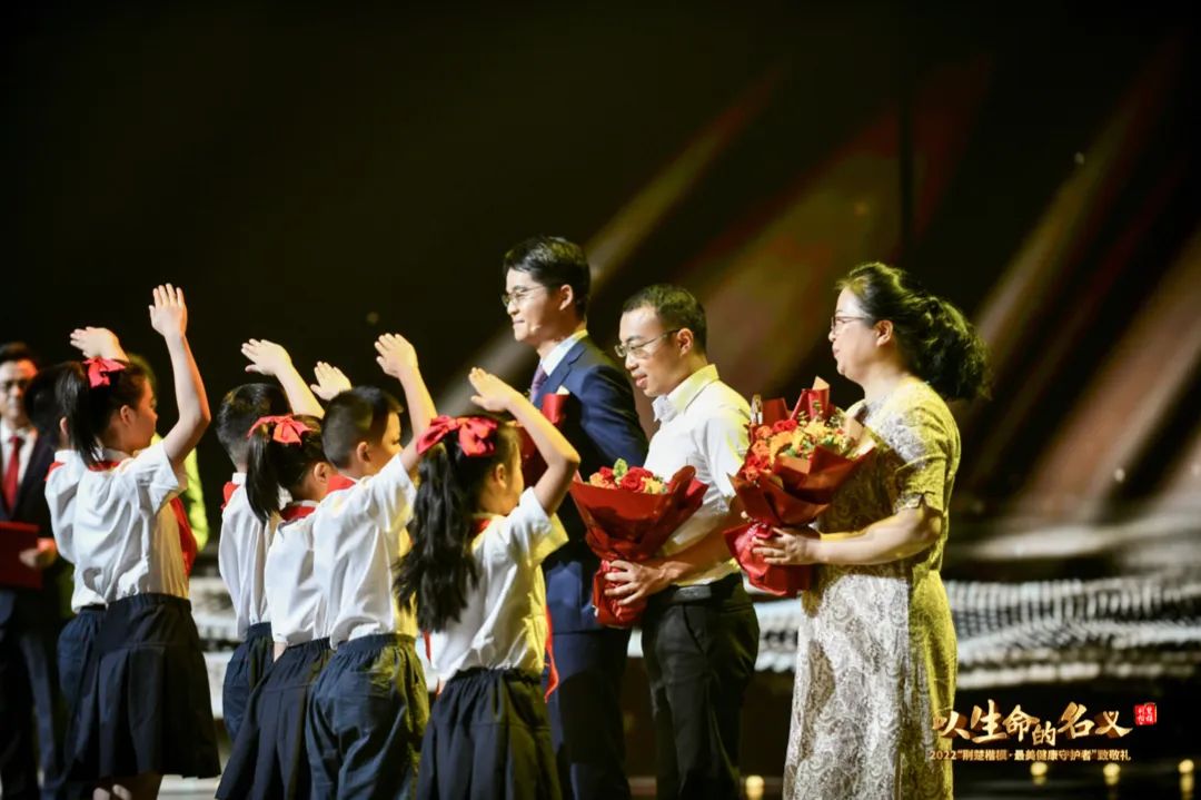 一幕幕感人的场景、一句句质朴的语言、一个个生动的画面,通过情景演绎、现场讲述和真情对话等多种表现方式,让最美健康守护者们朴实温暖却又铿锵有力的事迹得以再现。少先队员们手捧鲜花和奖杯向“荆楚楷模·最美健康守护者”致敬。