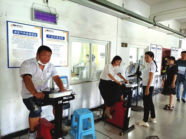 8月11日,市体育事业发展中心国民体质监测组走进康舒电子(武汉)有限公司,为该企业约800名职工进行体质监测。图为体质监测现场。(摄影记者 陈亚东)