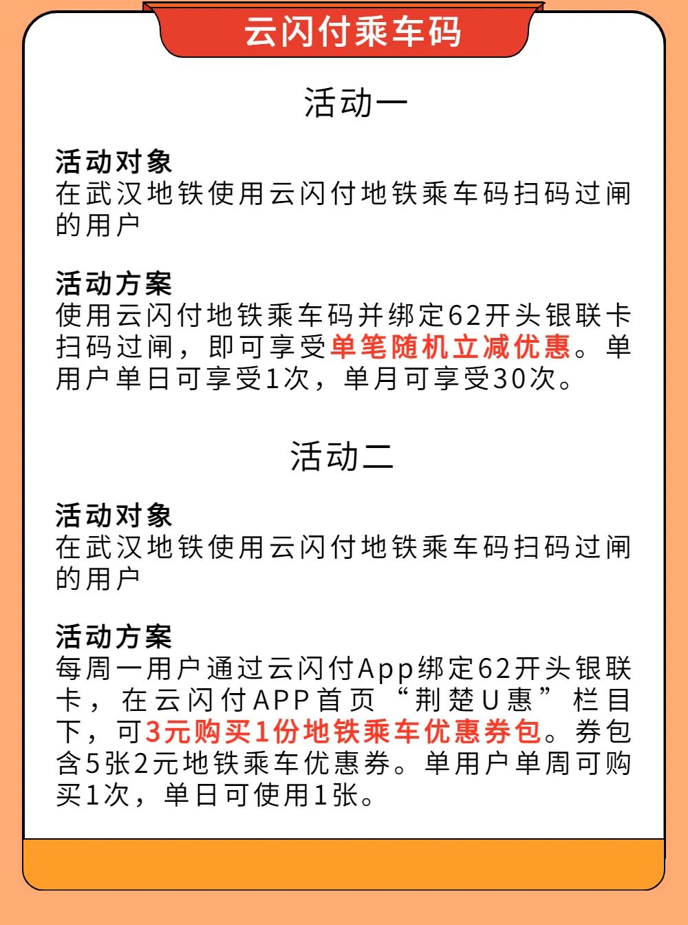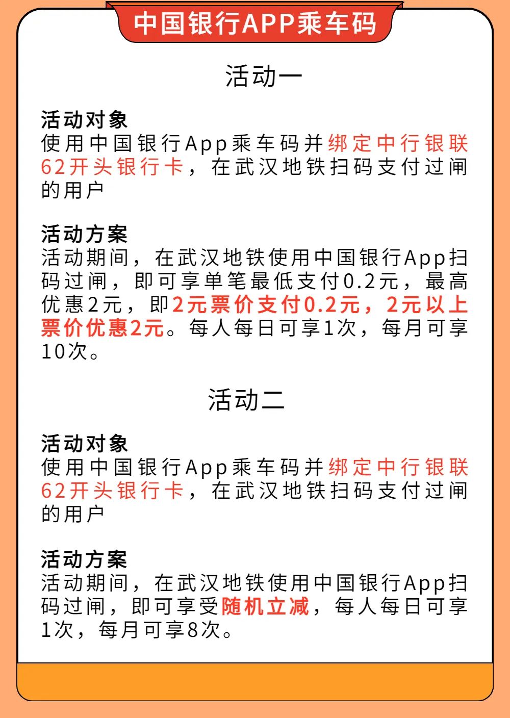 武汉地铁乘车优惠活动上新