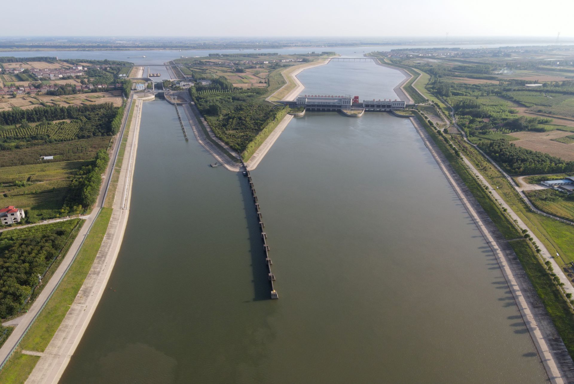 8月14日,在高温天气模式下,位于荆州区李埠镇长江龙洲垸河段引水处的引江济汉工程进水节制闸,正按上级指示开启,从长江调水通过干渠向汉江中下游补水,以全力支持沿线开展抗旱工作。