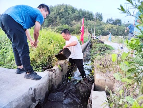 8月15日,窑上咀村窑鲁大畈人头攒动,在镇党委的组织下,由3个支部的党员、群众组成的清渠专班正配合着挖掘机施工作业。“群众需要什么,我们党员就干什么。”党员郭亚荣说。大家手挥舞着镰刀、锄头、铁锹、钢叉等农具,割草、清沟、排淤、除沙分工有序、各司其责。
