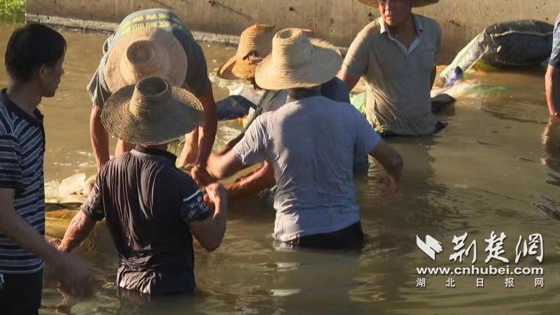 前期的三级提水抗旱,虽然有效缓解了当前的旱情,但是,田里灌溉足了之后的水,又白白流到了河里。为了节约抗旱用水、用好用足每一滴水,村委会一班人向村里的党员群众问计,商量出了一个巧办法。“这个闸口是防洪抗旱两用,旱情比较严重,我们把这个闸口放下来,从这里三级取水灌溉这所有的面积,所有灌溉田地的水,又要回到储水的地方实行整个内循环,确保节约水源。”浠水县汪岗镇朱泗桥村党支部书记杨峰说。