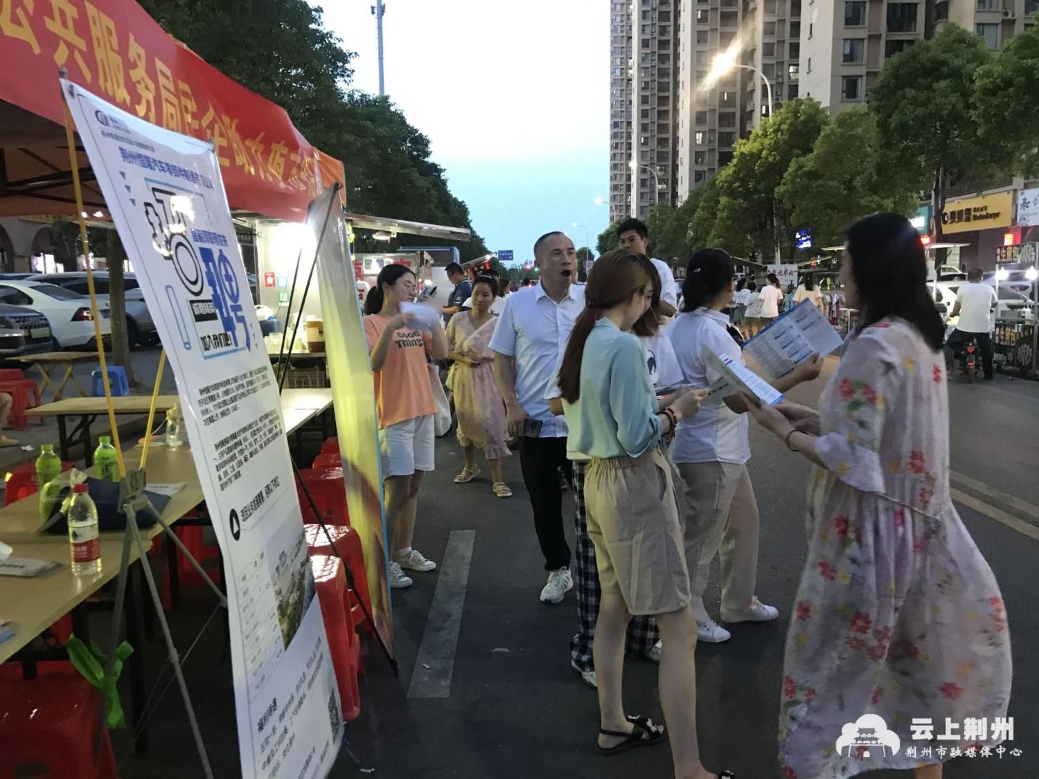 8月15日晚上,“荆州经开区公共服务局民企助力夜市招聘会”在金源世纪城举行,六家企业到场招聘,提供岗位300余个。
