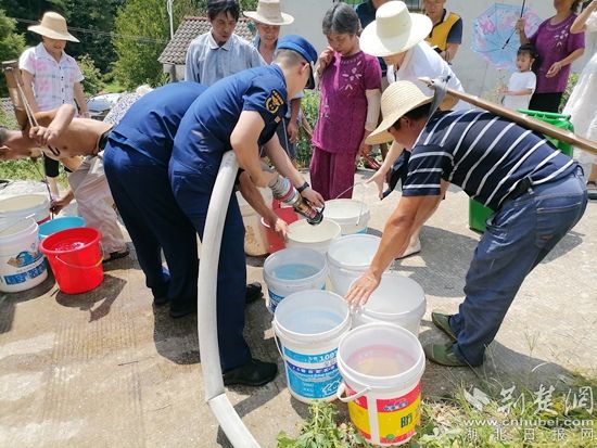 荆楚网(湖北日报网)讯(通讯员 王毕勇 谭文)8月15日上午,当得知英山县温泉镇羌湾村两个村民小组群众吃水困难后,英山县应急局迅速联合县消防救援大队冒着40℃以上的高温,沿着蜿蜒的山路为该村两个小组22户65位群众送去生活用水5吨,受到群众欢迎。