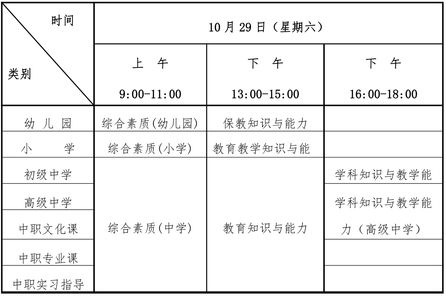 考试时间:10月29日