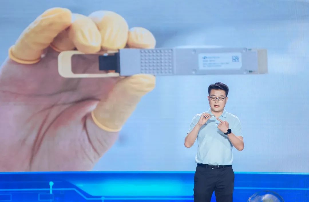 陈鹏与数字人希加加隔空互动,介绍光模块的重要作用。作为光通信的“心脏”,光模块在电信网络和数据中心算力中均占据要津,上至硬核科技,下到国计民生,都少不了它的身影。