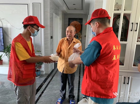 “戴奶奶,我们送饭来了!”“刘叔叔,饭菜还是热的,您记得趁热吃哦!”鄂州市燕矶中学志愿者们为还建房小区行动不便的老人送“爱心午餐”,两位老人激动不已,连声道谢,社区居民纷纷点赞。