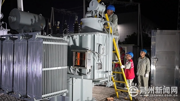 国网松滋市供电公司副总经理黎伟说,降温和抗旱用电负荷快速猛增,35千伏陈店变压站现有的两台主变1.5万千伏安容量已不能满足需要,他们决定采取紧急措施,利用凌晨相对低负荷时段,组织人员新增一台5000千伏安变压器,以保障抗旱和人民群众生产生活正常用电。