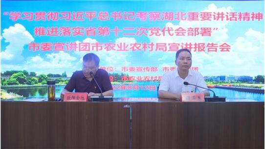 近日,“学习贯彻习近平总书记考察湖北重要讲话精神 推进落实省第十二次党代会部署”市委宣讲团市农业农村局宣讲报告会举行。市委宣讲团成员、市委党校副校长谭泽春作专题辅导报告。