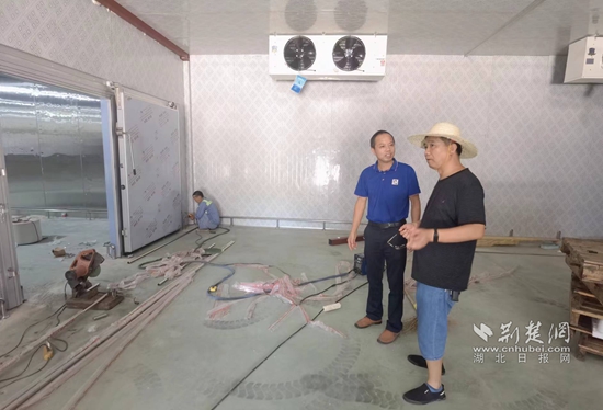 8月25日,咸宁外婆湖食品有限公司老总高立刚正在工厂带着工人加紧建设冷库,这是他在嘉鱼县生产厂房修建的第七个冷库。