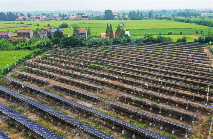 杨渊村光伏发电项目是江陵县2018年的联建项目,总投资680万元,占地面积约2万平方米,装机容量为850KW。村级光伏电站系统以固定支架形式安装于地面,系统配套3150块270Wp多晶硅光伏组件,含500KW组串式并网逆变器2台,10台光伏防雷智能汇流箱等相应配置。它的建成,既是乡村振兴的一大亮点,又带动了村集体经济,同时还为国家电网输送了大量能源。截至目前,该电站年发电量约100万KWh左右,创收85万元。