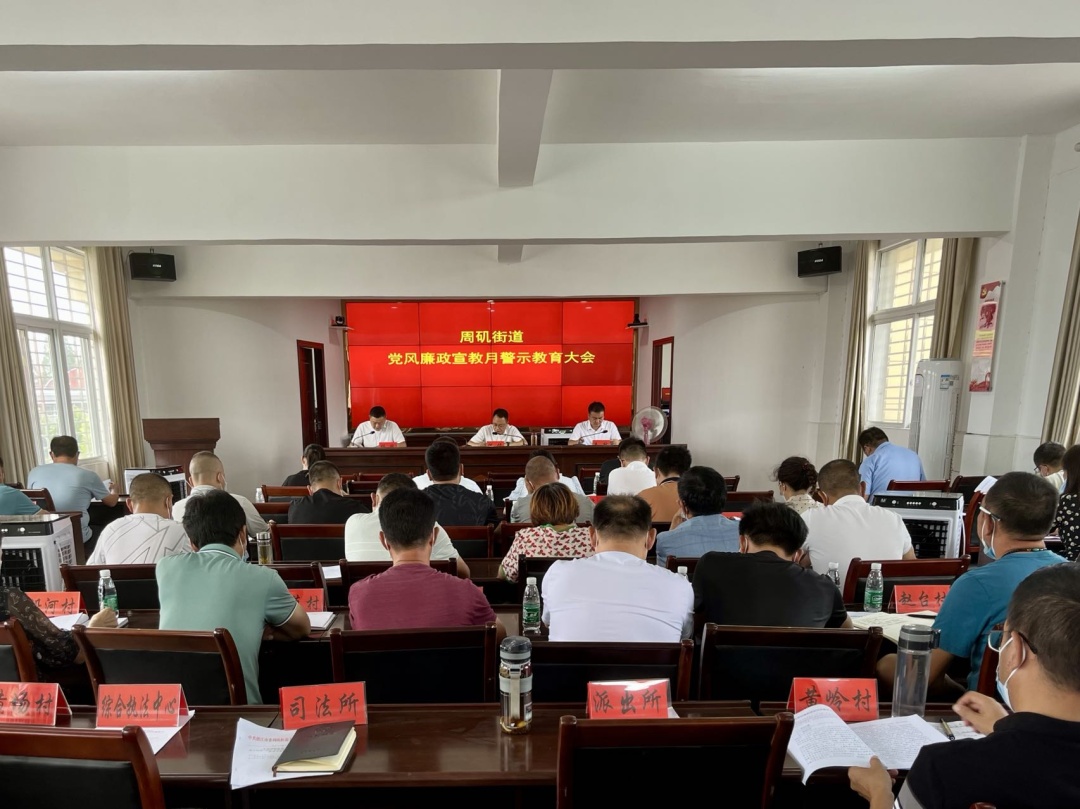 会上集中观看了系列警示教育片《零容忍》第二集《打虎拍蝇》,“以案警醒、以案促改”,教育引导广大党员干部从中吸取教训,引以为戒。该街道纪工委书记杨超领学了《周矶街道2022年党风廉政建设宣传教育月活动方案》。