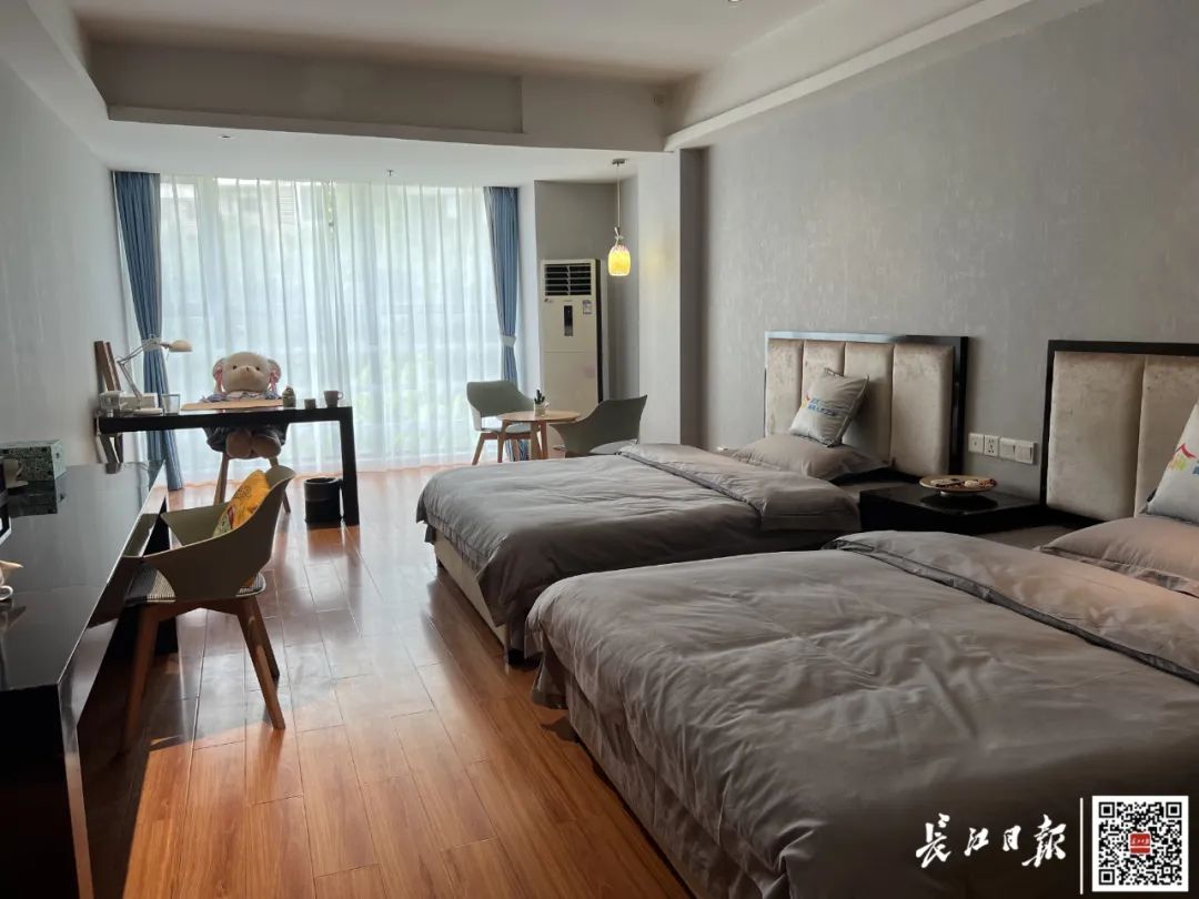 记者在武汉青年人才之家·壹号驿站看到,该楼共5层,其中的二层和三层为青年人才驿站,共有70间房100个床位。房间内部,书桌、台灯、空调、24小时热水器、宽带、独立卫浴、热水壶、电视等设施设备一应俱全。板凳上的毛绒玩偶和窗边的多肉绿植为室内增添不少趣味。