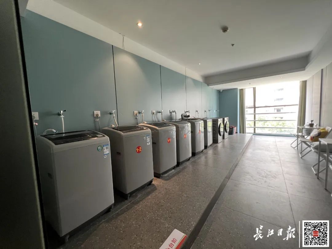 驿站工作人员介绍,一楼共享活动区设计如同“咖啡馆”,将来计划开展文艺沙龙、交友联谊、城市体验等活动。二层共享厨房配套灶台、电磁炉、冰箱、空调等设备,共享餐厅可同时容纳50人就餐。三层设有共享长廊和共享花园,提供学习、办公与休闲场所。五层共享洗衣房配备6台洗衣机和2台烘干机,以满足洗晒需求。