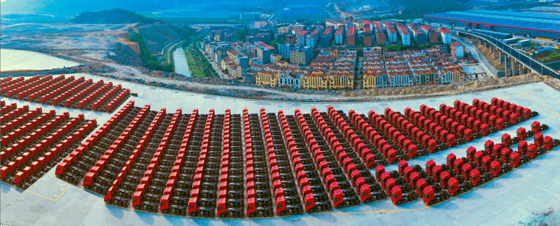 易捷特新能源汽车有限公司生产车间里,工人正在赶制来自欧洲市场的订单