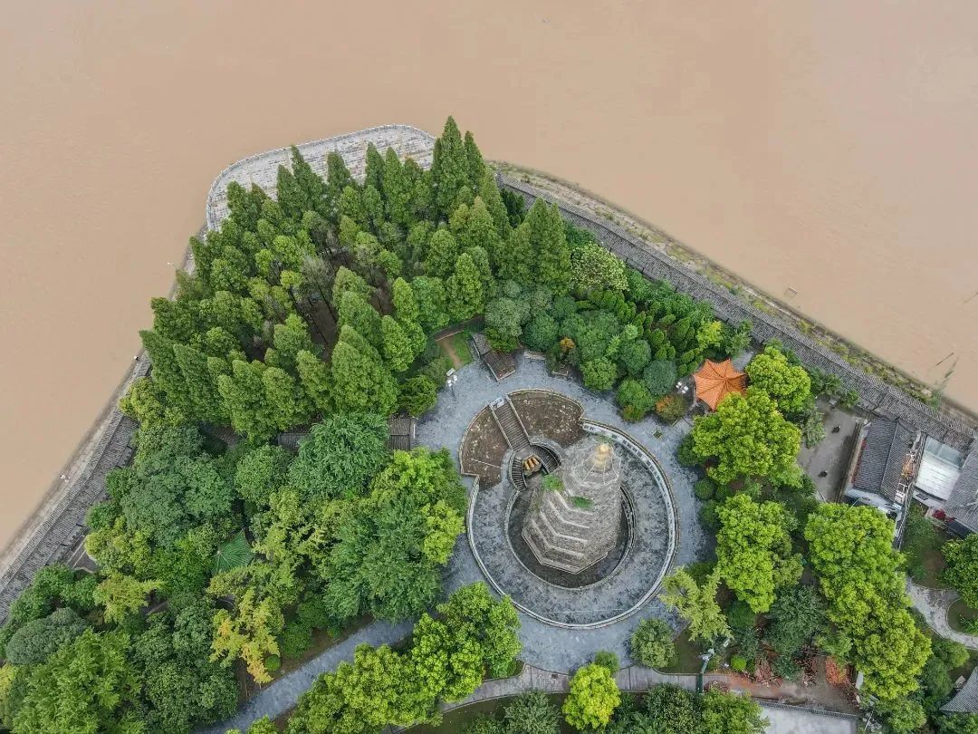 坐落于荆江大堤内侧古观音矶头之上,