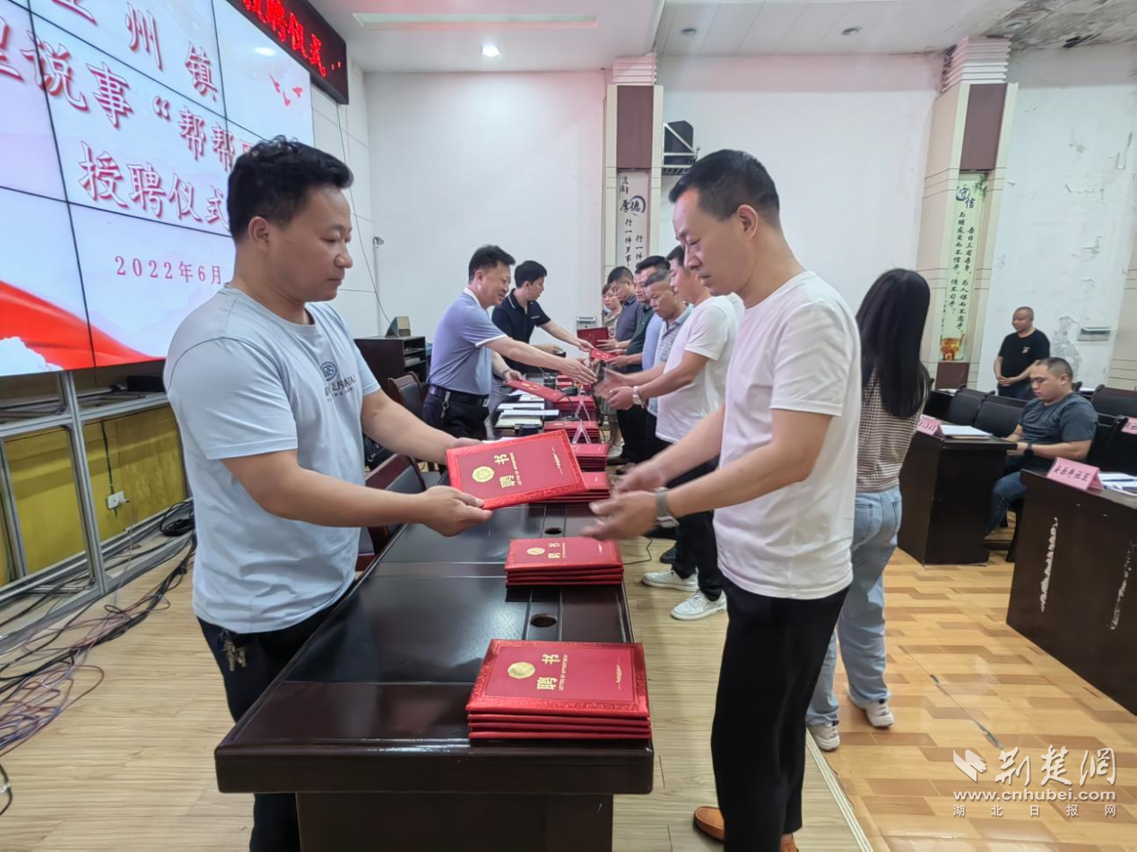 业州镇坚持以党建为引领,广泛汇聚合力,聚合乡贤能人,组建评理说事“帮帮团”,为群众提供问题反馈、矛盾调解、法律咨询、政策宣讲等多种服务。6月8日,业州镇评理说事“帮帮团”授聘仪式举行,43名“帮帮团”成员“持证”上岗。