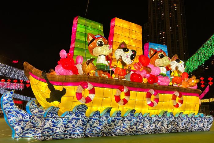 在维园展示的还有多组不同主题的璀璨彩灯,包括由本地扎作艺术家许嘉雄以中式帆船载着康文署吉祥物“活力仔”及“思文喵”为主题创作、约7米高的大型彩灯《双星伴月庆团圆》;另有由中小学学生亲手制作的花灯、以骏马和明月为题的大型走马灯、十二星座的彩灯及令人重拾童趣的怀旧灯笼,营造欢欣共庆气氛。