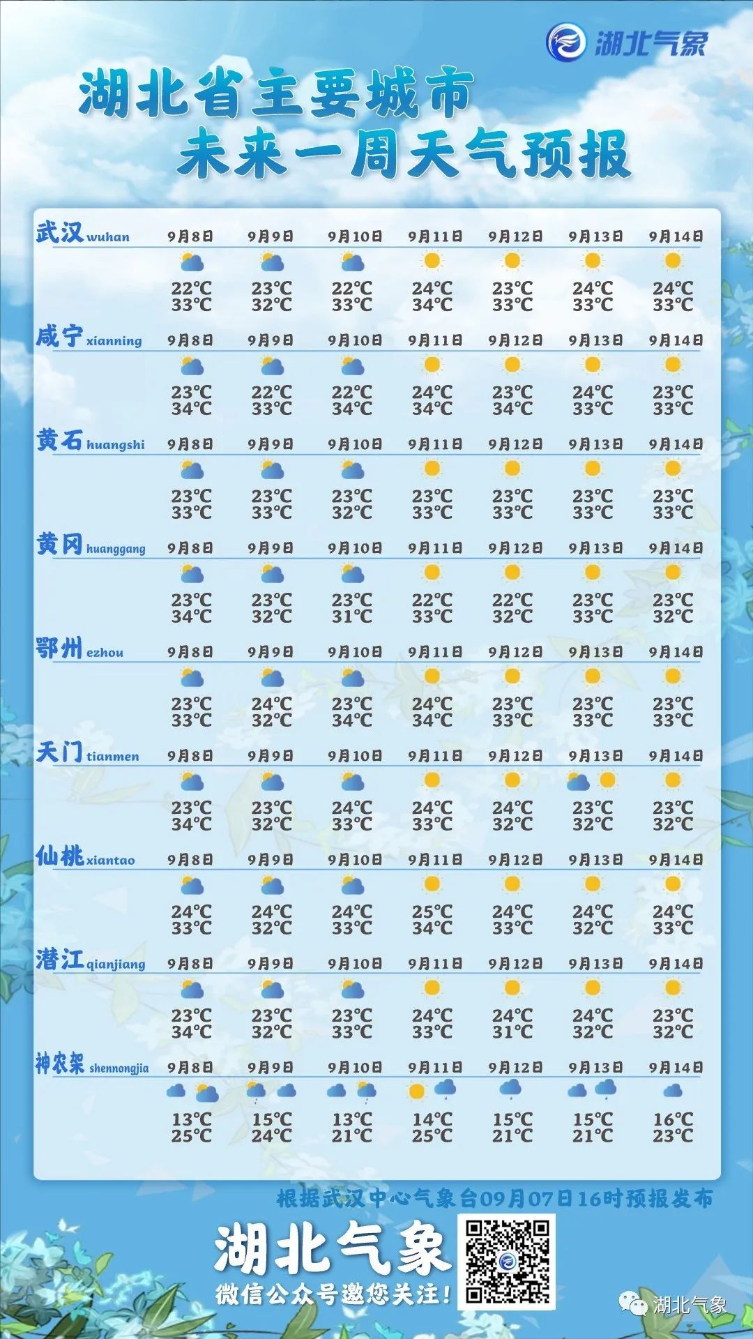 湖北省主要城市未来一周天气预报