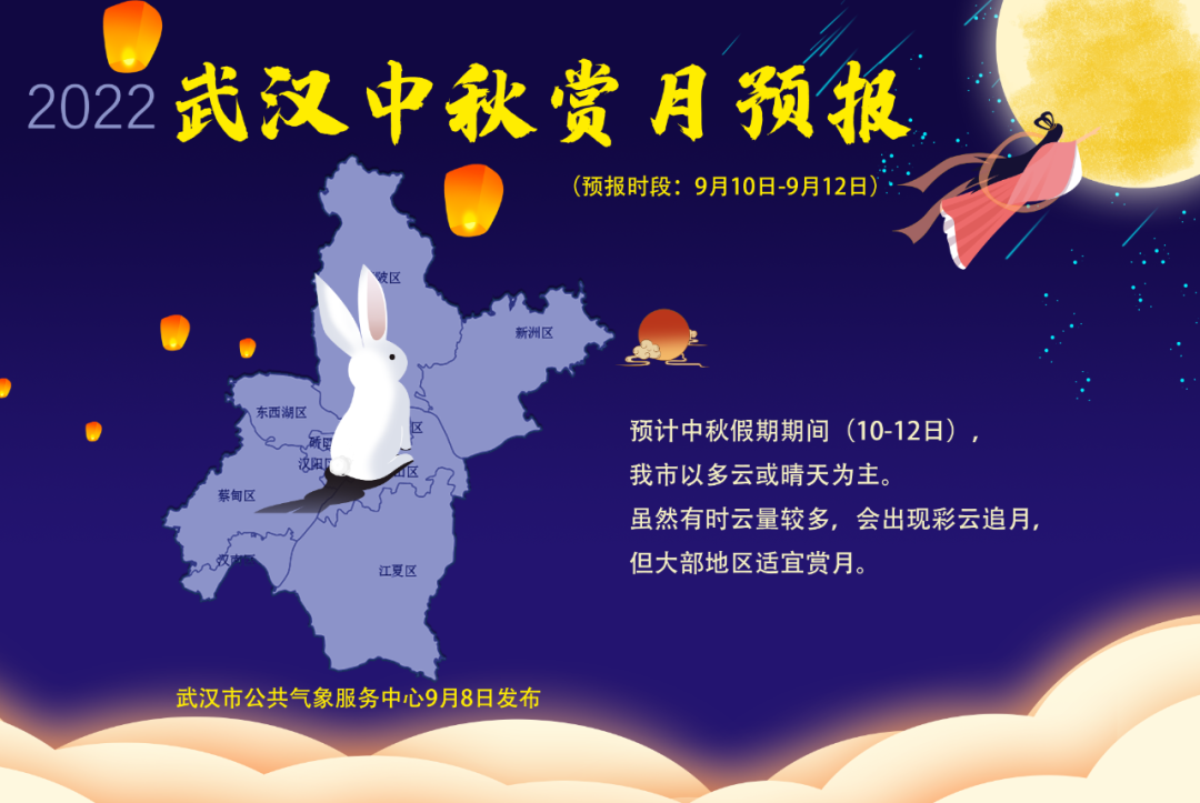 预计我市中秋节期间,虽然云量较多,会出现彩云追月,但大部地区适宜赏月。