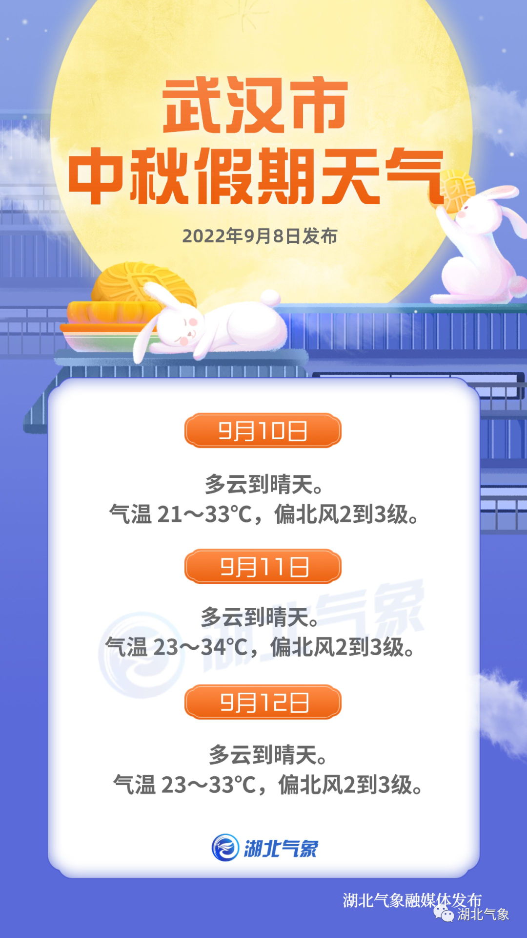 预计今年中秋期间我省大部地区以多云到晴天为主,其中西部部分地区有阵性降雨发生。午间气温较高,建议合理安排出行时间,注意做好疫情防护。东部地区空气干燥,应加强用电用火安全管理,防范森林及城镇火险。
