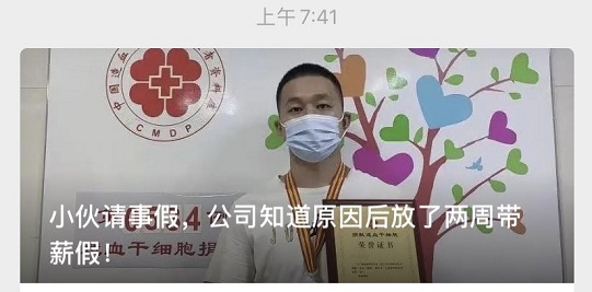 公司领导得知他要捐献骨髓后