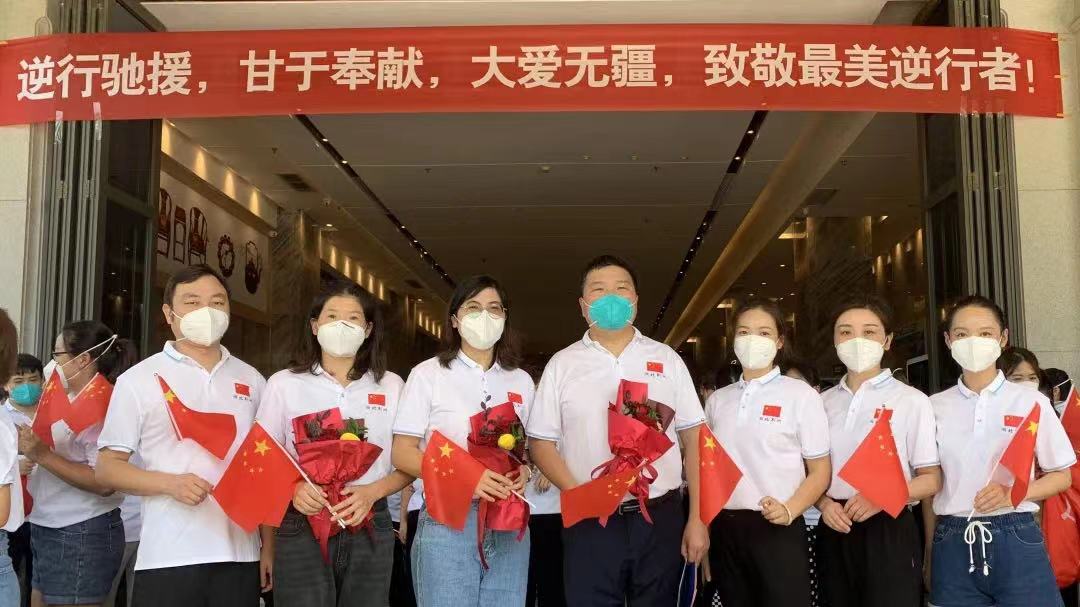 可看着刚刚做完膝关节置换术尚躺在病床上的婆婆,还有年幼无人照料的孩子,我的脚步被牵绊了……此时,爱人看出了我的顾虑,拍拍我的肩膀说:“2020年,在我们荆州疫情最困难的时刻,海南医务人员不远千里来支援我们; 现在他们需要我们了,我们当然不能退缩。家里有我照顾,你放心!去做你想做的事情吧!我们都支持你!”