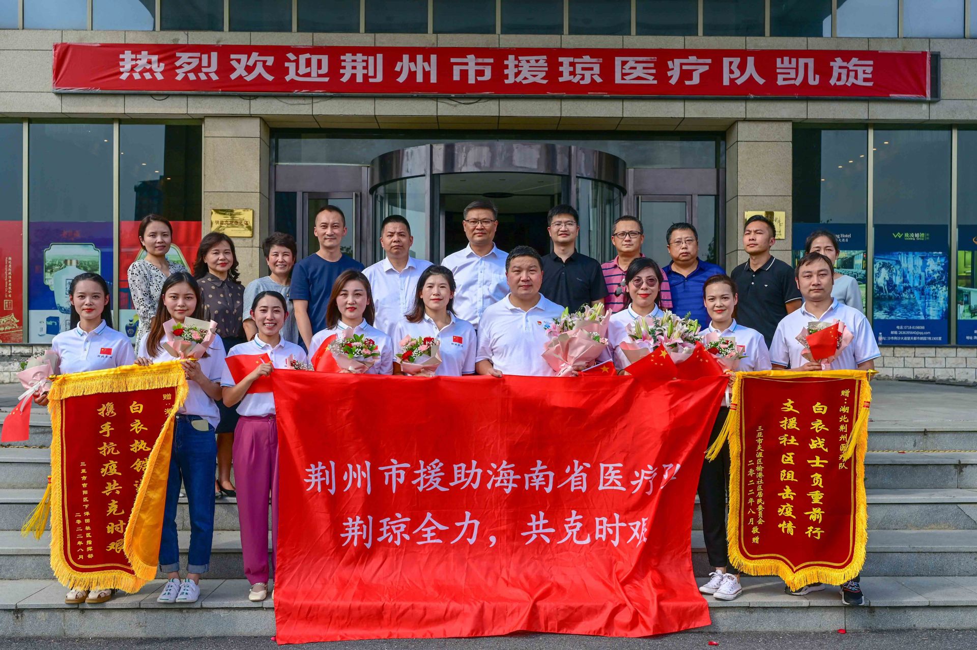 在支援海南的28天里,荆州一医党委十分关心援琼队员们的工作情况、生活状况和身心健康,每天都会打去问候电话,解决大家的后顾之忧,增添前行的信心和力量。“在院党委的支持和关心下,援琼队员们克服了高温、潮湿、暴雨等恶劣天气,圆满完成了疫情防控各项任务,生动地诠释了荆州一医医护人员的责任与担当。”荆州一医副院长蔡君表示。