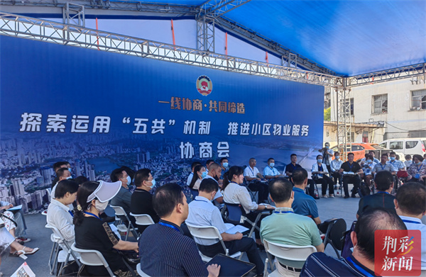 “老旧小区是否具备引进专业物业的条件?物业管理将为居民生活带来哪些便利……”9月16日上午,沙市区朝阳街道东苑社区沙棉东小区附近的“圆桌议事会”热闹非凡,一场以“探索运用‘五共’机制,推进小区物业服务”为议题的“一线协商·共同缔造”现场观摩活动正在进行。