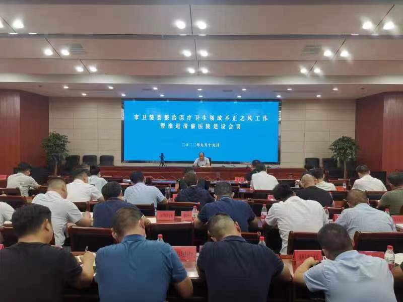 9月19日下午,仙桃市卫生健康委召开整治医疗卫生领域不正之风工作暨推进清廉医院建设会议。市卫健委主要领导、分管领导、驻委纪检监察组负责人、委机关各科室负责人,市直医疗卫生单位主要负责人、3家公立医院纪委书记和负责纠风工作部门负责人,15家乡镇卫生院和4家社区卫生服务中心主要负责人,民营医院法人代表或主要负责人,邀请市公安局、市市场监管局、市医保局相关科室负责人共计80多人参加了会议。