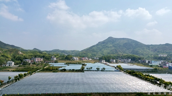 荆楚网(湖北日报网)讯(通讯员刘健 范骋)刷黑的公路伴着鸡笼山脚下一脉小溪穿村过寨,左边是连绵的大棚果蔬,右侧是飘香的稻田。