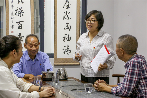 9月22日,在沙市区胜利街道工农村社区的清风茶室里,社区党委书记张顺婷与辖区党员代表边喝茶边开展“美好环境与幸福生活共同缔造”协商议事座谈会。