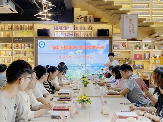 读书会现场,麻城市第六小学党委副书记、全国TCL希望工程烛光奖引领奖获得者徐能英老师就《阅读连接美好 携手播种未来》这一课题作了经验交流,她针对学生的身心特点,并结合教学自身规律,创新阅读教学方法,通过班级图书角建设、经典诵读、作诗比赛、暑期游学等方式,引导学生形成正确的阅读动机,激发读书的乐趣,教给学生读书的方法,培养良好的读书习惯,提升学生的文化底蕴,营造浓厚的学习氛围。