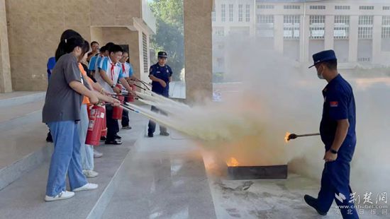 学生们学习灭火器使用方法。通讯员 供图