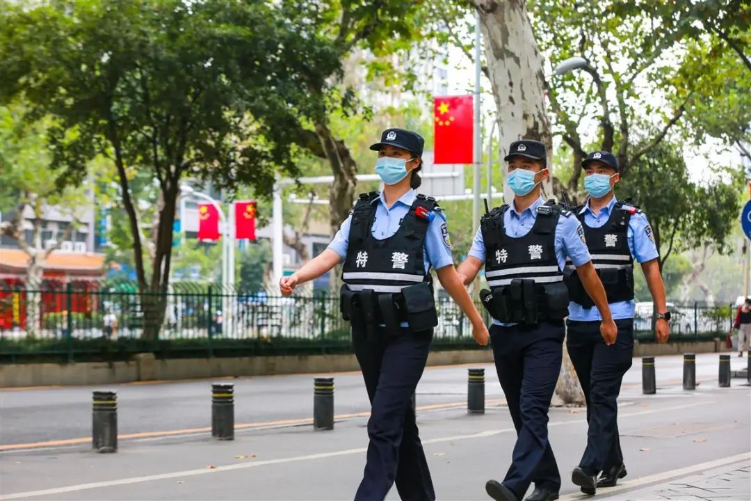 10月1日,新警王子月跟随特警队员在武汉汉街巡逻