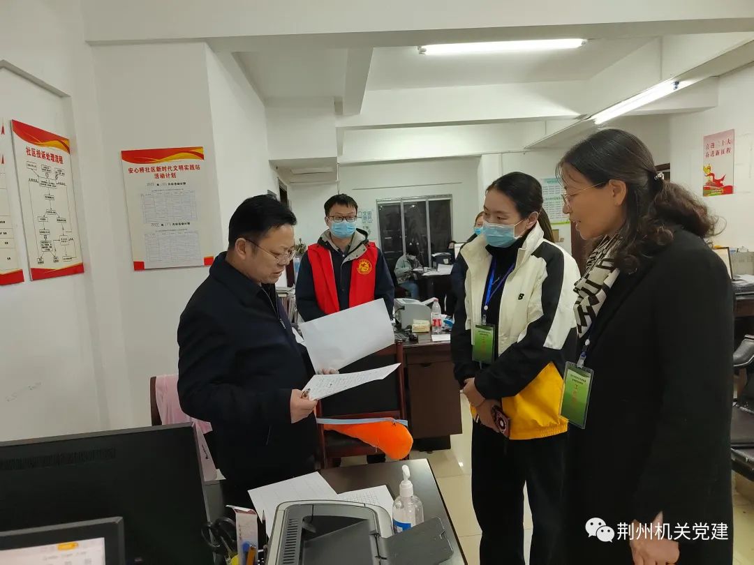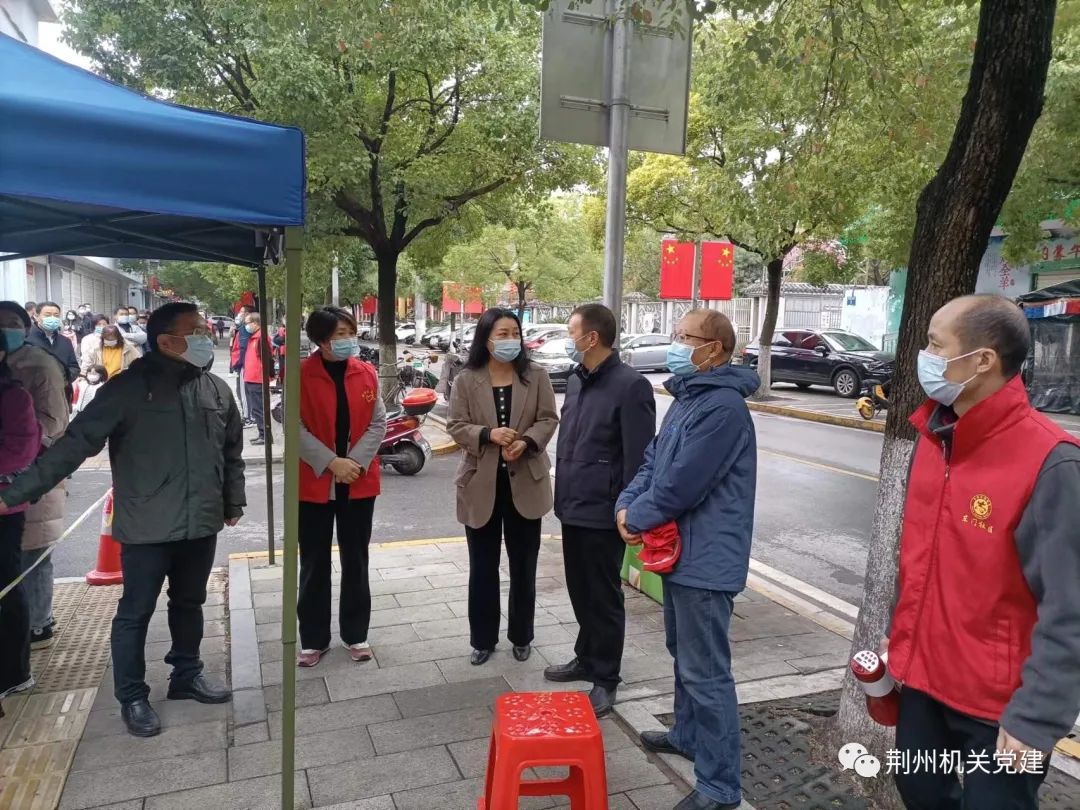 市委组织部常务副部长肖业辉带队到沙市区胜利街道永红社区督导疫情防控工作,详细了解了驻社区工作组运行、党员干部下沉、第二轮核酸检测、来荆返荆人员摸底、重点场所管控等情况。