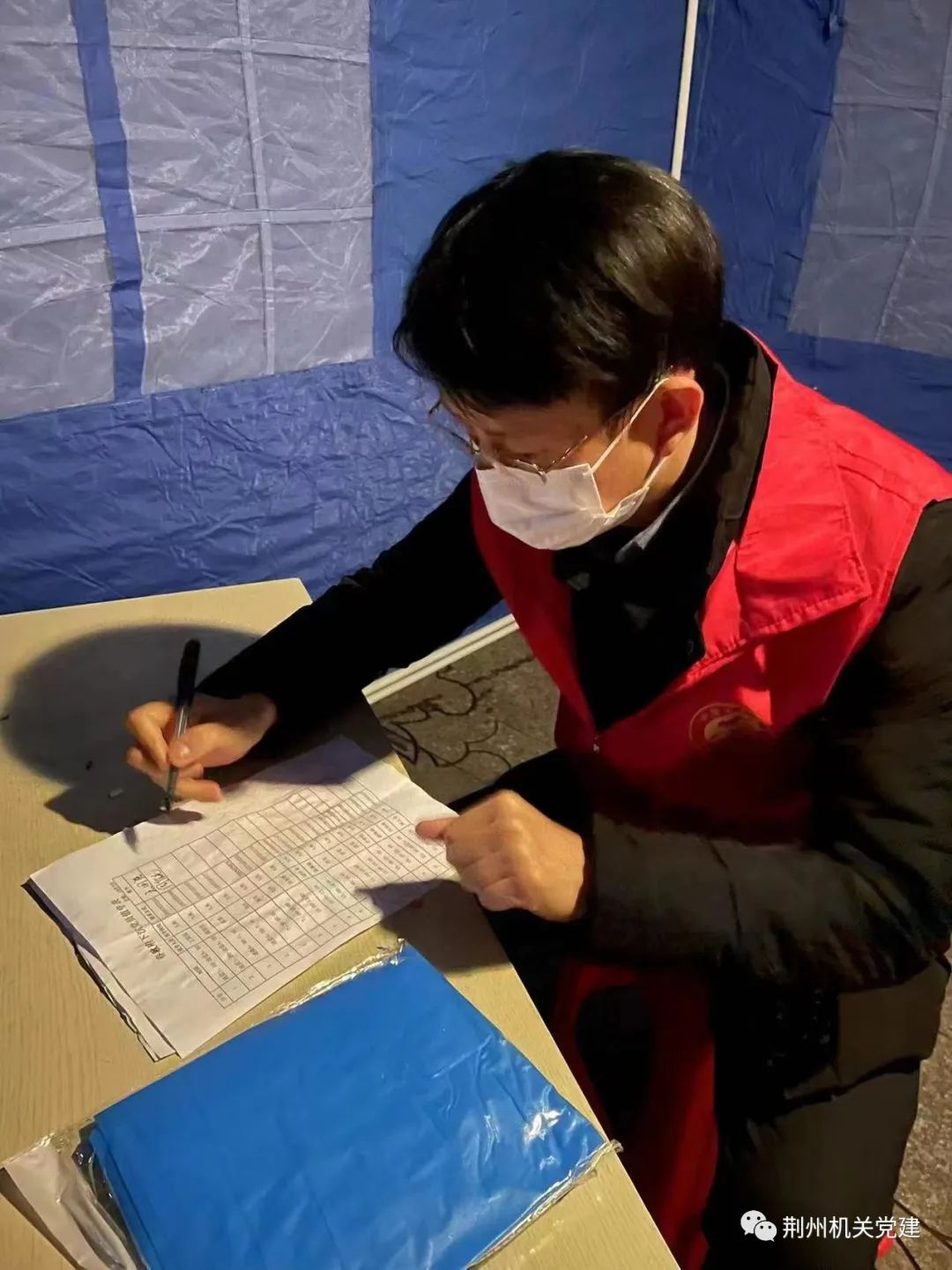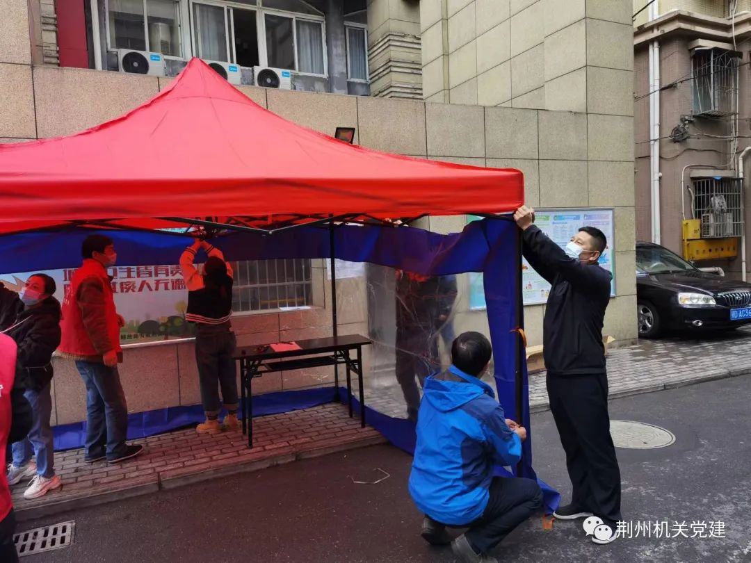 市城管执法委党组书记、主任鲍峰带领驻荆襄河社区工作组指导社区开展疫情防控工作。在社区,鲍峰向社区书记了解下沉党员工作开展情况,疫情防控工作存在的困难,到社区封控点检查下沉党员值班值守情况,并与下沉党员一起共同搭建帐篷。