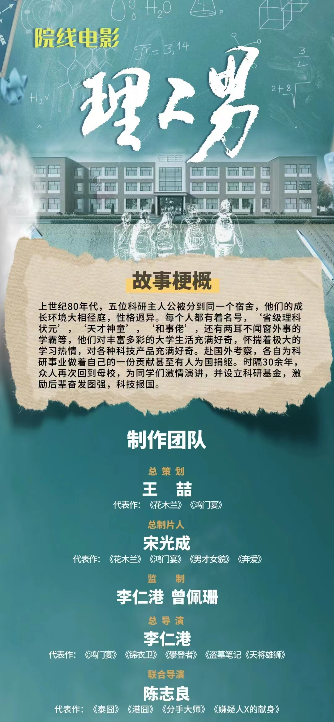 《理工男》电影将讲述上世纪80、90年代改革开放初期,一群风华正茂的理工男发奋图强、自主创新,最终成为中国科技中流砥柱的故事,情节根据华科大多位杰出校友的真实经历创作。