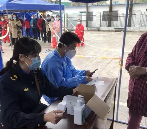 江陵县城管系统下沉党员干部根据需要分为五个值班组,值守在资市镇等交通卡口,查验行人车辆健康码、行程卡等信息;在江陵郡都、江景豪庭等重点封控小区,协助开展核酸采样秩序维护等工作。