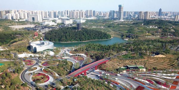 今年5月建成并投入运营的荆门园博园位于漳河新区核心区域,占地面积2094亩。这里曾是荒芜的废弃采矿区,通过修复和绿化景观处理,以水为核心,以山为骨架,依山就势而建。园博园分为园林生活区、灵秀荆楚区南北两大片区,5大主题展馆展厅展现荆楚文化魅力,32个特色展园荟萃园林艺术精华,美不胜收。(记者 朱舜 摄)