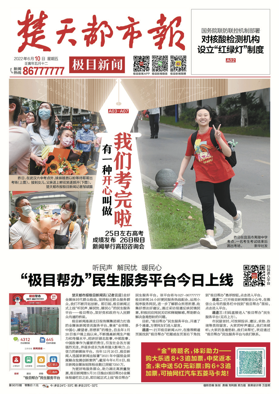 创办于1997年的楚天都市报,自诞生之日起,便坚守“全心全意为市民服务”的责任定位,一纸风行荆楚大地。