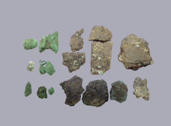 陈家畈遗址出土铜矿石、炉壁、炉渣。